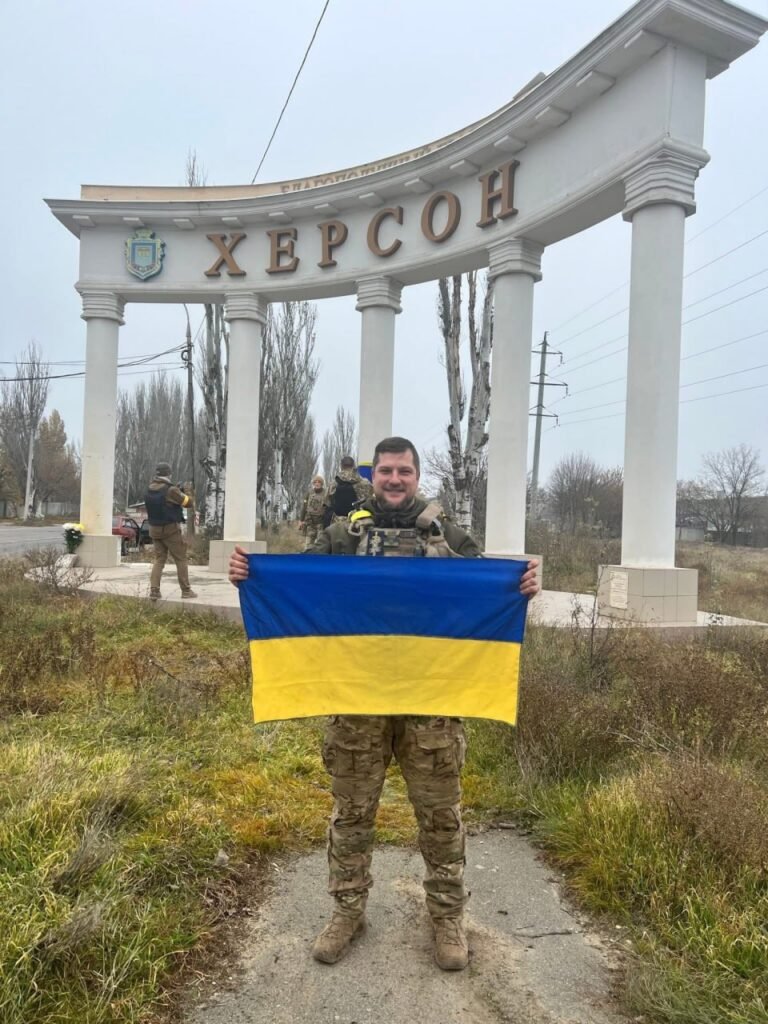 Для мене це особлива дата, адже наша бригада створювала умови для цієї події, саме у Миколаївській області я отримав першу свою важку контузію. Саме в цей день я вперше побачив, що таке, коли тебе чекають українці, і що таке радість звільнення від окупації! Знаю, вам зараз непросто, але ви гідно тримаєтесь, і я вам дякую за це. Херсон – то любов, — розповідає військовий Олександр Погребський.