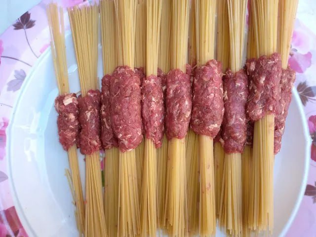Спагеті. Відваріть їх до стану «аль денте». Потім розкладіть на курячому м’ясі, щоб вони утворили «вуса».