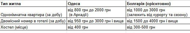 Вартість житла є однією з найбільших статей витрат на відпочинку. В Одесі ціни на оренду суттєво зросли, особливо влітку. У Болгарії ціни на житло залежать від курорту та типу розміщення.